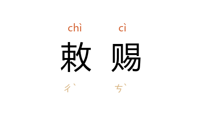 引《三国志·卷三三·蜀书·后主禅传》:「存亡敕赐,惟所裁之。」《水浒传·第九回》:「他是大周柴世宗嫡派子孙,自陈桥让位有德,太祖武德皇帝敕赐与他誓书铁券在家中,谁敢欺负他。」