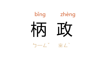 ⒈ 柄,握柄、掌握。柄政指掌理政权。
