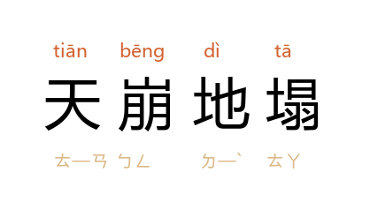 引《三国演义·第七一回》:「黄忠一马当先,驰下山来,犹如天崩地塌之势。」