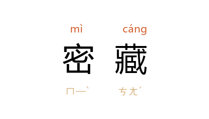 引《晋书·孝友传·盛彦》:“婢忿恨,伺 彦 暂行,取蠐螬炙飴之。母食以为美,然疑是异物,密藏示 彦。”《南史·褚彦回传》:“又有门生盗其衣, 彦回 遇见,谓曰:‘可密藏之,勿使人见。’”邹鲁 《中国同盟会》八:“又岁括金亿万,密藏诸陵墓中。”