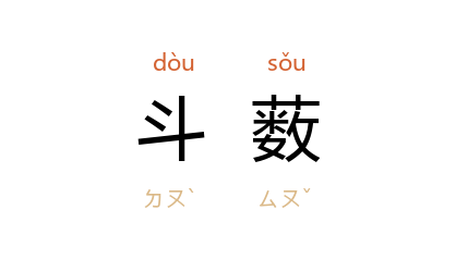 ⒈ 涤除烦恼。《文选·王巾·头陀寺碑文》唐·李善·注:「天竺言头陀,此言斗薮,斗薮烦恼,故言头陀。」唐·皮日休〈寺钟暝〉诗:「百缘斗薮无尘土,寸地章煌欲布金。」也作「抖擞」。