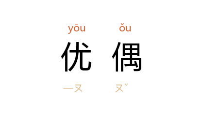 引清 唐甄 《潜书·权实》:“若徒以文也,譬之优偶之戏,衣冠言貌,陈事辨理,无不合度,而岂其实哉!以娱人之观听也。”清 唐甄 《潜书·存言》:“諂媚慆淫,相习成风,道德不如优偶,文学不如博奕。”