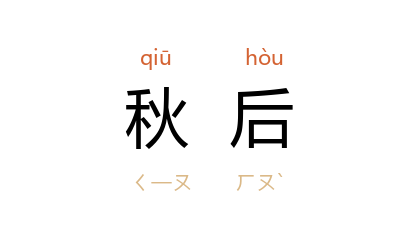 引《魏书·广陵王羽传》:“今始维夏,且待至秋后。”唐 杜甫 《早秋苦热堆案相仍》诗:“常愁夜来皆是蝎,况乃秋后转多蝇。”唐 皮日休 《怀鹿门县名离合》诗之一:“山瘦更培秋后桂,溪澄閒数晚来鱼。”唐 罗隐 《寄徐济进士》诗:“霜压 楚 莲秋后折,雨催蛮酒夜深酤。”