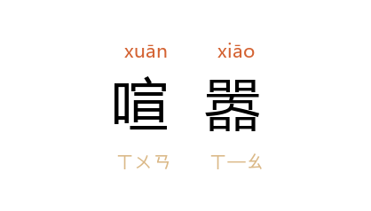 一本作“諠嚣”。 《隋书·宇文化及传》:“虔通 伪曰:‘草坊被烧,外人救火,故諠嚣耳。’”
