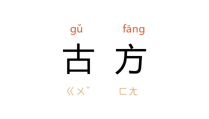 引《晋书·范宁传》:“古方, 宋 阳里子 少得其术。”宋 沉括 《梦溪笔谈·药议》:“古方言云母麤服,则著人肝肺不可去。”杨沫 《不是日记的日记·录音剪辑》:“一共三个人,搞起了古方生脉散的科学实验。”