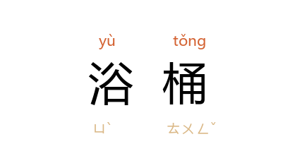 引《水浒传》第二八回:“不多时,那个人又和一个汉子两个来:一个提着浴桶,一个提一个大桶汤来,看着 武松 道:‘请都头洗浴。’…… 武松 跳在浴桶里面,洗了一回。”清 俞樾 《茶香室丛钞·八大王之子》:“元 吴自牧 《梦粱録》有项桶、浴桶、马子桶之名。”