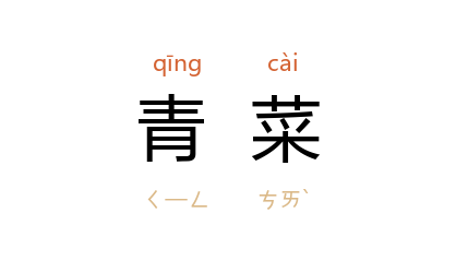 ⒈ 一般指小白菜、青梗白菜。也泛指蔬菜。