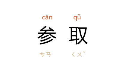 引金 王若虚 《杨子法言微旨序》:“参取众説,析之以己见。”元 刘祁 《归潜志》卷五:“其学参取佛老二家,不喜高远奇异,循常道。”明 李贽 《观音问·答自信》:“於此着实参取,便自得之。”