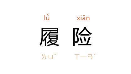 引晋 孙绰 《庾冰碑》:“履险思夷,处满思冲。”北齐 颜之推 《颜氏家训·文章》:“陆机 犯顺履险, 潘岳 乾没取危。”《南史·侯安都传》:“周侯 交不择人,而推心过差,居危履嶮,猜防不设。”宋 洪迈 《夷坚丁志·金溪渡谶》:“工役者日有履险之劳。”