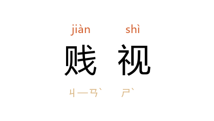 引清 邹容 《革命军》第五章:“而天下之视奴隶者,即无不同此贱视者也。”鲁迅 《坟·摩罗诗力说》:“苟见众生动于凡情,则輒施以贱视。”郭沫若 《王昭君》第一幕:“我的艺术是多么贵重,我是不许人贱视的。”