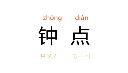 例如:到钟点了,快走吧!2.小时;钟头。