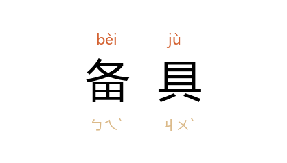 引《左传·襄公十年》:“昔 平王 东迁,吾七姓从王,牲用备具。”《吕氏春秋·季春》:“命舟牧覆舟,五覆五反,乃告舟备具于天子,天子焉始乘舟。”宋 王禹偁 《右卫将军秦公墓志铭》:“李氏 割据,百官备具,去就终始,公得其所。”清 朱仕琇 《溪音序》:“今读所补琴操古歌益渊邃,正变备具。”