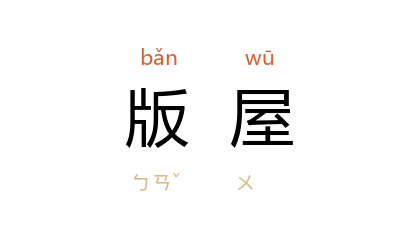 ⒈ 用木板建造的房屋。晋左思《三都赋》序:“见'在其版屋',则知秦野西戎之宅。”《诗·秦风·小戎》作“板屋”。以板为屋,为我国古代西北地区少数民族习尚。因亦借指我国西北少数民族地区。