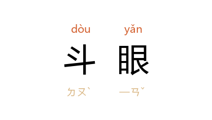 ⒈ 眼睛的黑眼珠向鼻梁方向集中,不相对称,称为「斗眼」。