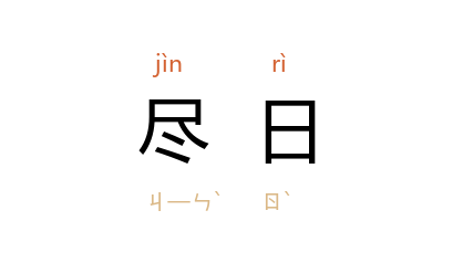 终日,整天。 明 陈子龙 《南乡子》词:“儘日对红颜,画阑深深半掩关。”