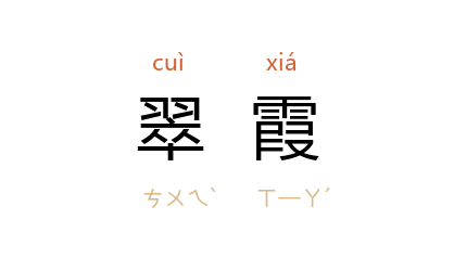 引晋 郭璞 《江赋》:“抚凌波而鳧跃,吸翠霞而夭矫。”唐 武元衡 《奉酬中书李相公早朝于中书候传点偶书所怀》诗:“翠霞仙仗合,清漏掖垣深。”明 刘基 《满庭芳·咏荷花》词:“翠霞深处,谁舞白霓裳。”