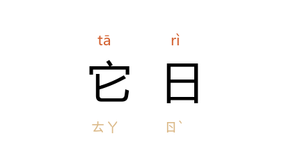 引唐 无名氏 《迷楼记》:“它日,倭民 王义 上奏。”明 何景明 《祭李默庵先生文》:“所自就立者,已弗若公所望见者也。即它日又有能自就立,公又安能知耶?”明 王鏊 《震泽长语·仙释》:“入其室,金玉斕然盈目。其人恣取以出,而不觉遗其引。它日,内库失金,守藏吏以闻。引有人姓名,曰必此人所盗也。”