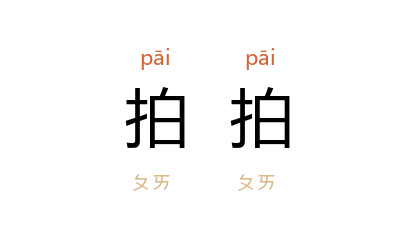 例如:「拍拍马屁」、「他拍拍桌子,说:『就这么决定。』」