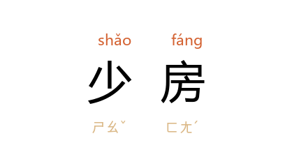 引元 黄溍 《清槤居士郑君墓铭》:“娶 傅福,字 世昌 ;少房 徐伟,字 妙英,皆前君卒。”明 宋濂 《郑府君墓铭》:“越四年,乙亥七月六日,夫人 吴 氏亦卒。越一十五日而少房 劳 氏又卒。”