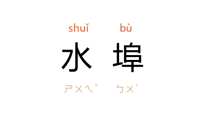 叶圣陶 《火灾·晓行》:“靠着池的东南岸,是一所破旧的农舍,屋后有一个水埠通到池面。”