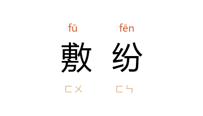 ⒈ 茂盛貌。《文选·王褒〈洞箫赋〉》:“洞条畅而罕节兮,标敷纷以扶踈。”李善注:“敷纷,茂盛。”一说为茎多貌,见吕向注。