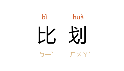 例如:「我们必须先来比划一下,技巧才能更纯熟。」