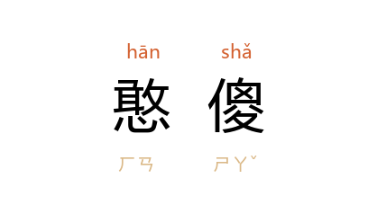 引曹禺 《王昭君》第二幕:“他心细,几乎可以窥见每一个人的不肯告人的心思。但是他脸上总是那一副憨傻可笑的模样。”柯岩 《奇异的书简·美的追求者》:“多么可爱呀!一只貌似憨傻的小绿毛狐狸端端正正地朝前坐着。”