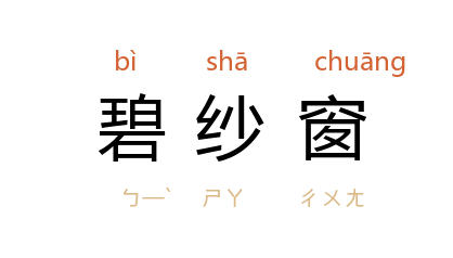 引前蜀 李珣 《酒泉子》词之四:“秋月嬋娟,皎洁碧纱窗外照。”明 冯梦龙 《山歌·无郎》:“姐儿立在碧纱窗,眼观孤雁好恓惶。”《红楼梦》第二六回:“﹝ 寳玉 ﹞觉得一缕幽香,从碧纱窗中暗暗透出。”