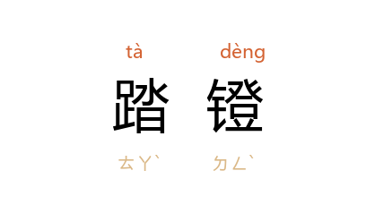 ⒉ 即马镫。挂在马鞍子两旁供骑马人踏脚的东西。