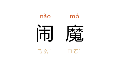 例如:「这个小孩子大概闹魔了,怎么哄也不肯睡。」
