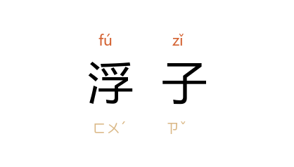 ⒈ 钓鱼时,栓在钓鱼线上的浮物。主要是让鱼钩沉在一固定水深的位置,当鱼浮子下沉,就表示有鱼儿上钩。