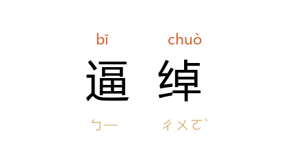 引《金线池·第三折》:「我为你逼绰了当官令,烟花簿上除抹了姓名。」《升仙梦·第一折》:「断绝了利锁名缰,逼绰了酒色财气。」