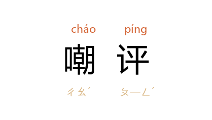 引唐 韩愈 《东都遇春》诗:“尔来曾几时,白髮忽满镜。旧游喜乖张,新辈足嘲评。”钱仲联 集释引 祝充 注:“评音病,评量。”宋 范浚 《读扬子云传》诗:“诡情怀禄遭嘲评,但用笔墨垂声名。”