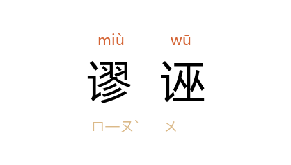 引清 蒲松龄 《聊斋志异·小梅》:“抵暮,媪来申谢, 王 咎其谬诬。”清 宋永岳 《志异续编·曾允吉》:“太史公 取《左氏传》而作《史记》,见 子我 被杀,不能深究,便认以为 宰予,而有‘ 孔子 耻之’之説,其谬诬不亦甚乎?”