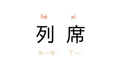 ⒉ 开会时,到场参与会议,有发言权而无表决权者,称为「列席」。