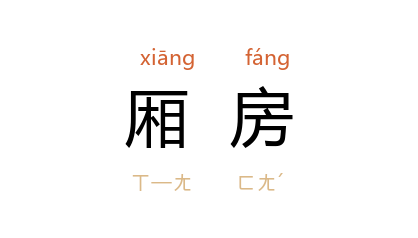 ⒈ 正房前,左右两边的房舍。也作「箱房」。