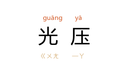 ⒈ 光照射在物体上所产生的压力。在天体中具有一定的作用。如慧星的尾巴背著太阳即是太阳的光压所造成的。