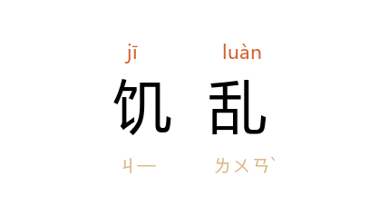 引《后汉书·第五伦传》:“臣三娶妻皆无父,少遭飢乱,实不敢妄过人食。”《后汉书·郑太传》:“卓 既迁都 长安,天下飢乱,士大夫多不得其命。”饥荒骚乱。 《后汉书·光武帝纪下》:“詔吏人遭饥乱及为 青 徐 贼所略为奴婢下妻,欲去留者,恣听之。”