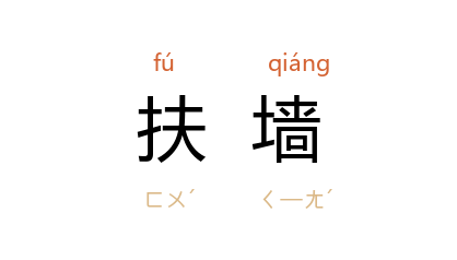 ⒈ 扶着墙。