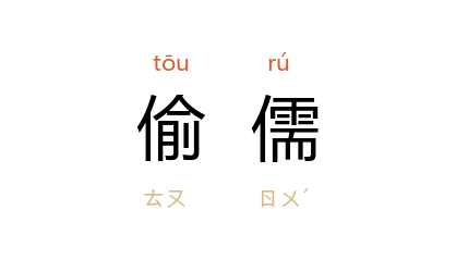 引《荀子·修身》:“劳苦之事,则偷儒转脱。”杨倞 注:“偷谓苟避於事,儒亦谓懦弱畏事,皆嬾惰之义。”《荀子·礼论》:“苟怠惰偷懦之为安居,若者必危。”杨倞 注:“懦读为儒,言苟以怠惰为安居,不能恭敬辞让,若此者必危也。”宋 司马光 《乞延访群臣第三札子》:“北齐 后主,志度偷懦,不喜见朝士,非私昵,未尝交语。”