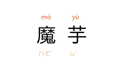 ⒈ 一种多年生草本植物,有比芋头娘块茎大的块状球茎,能制淀粉,常用它做成豆腐状食品。俗称“魔芋豆腐”。生长在中国、日本。