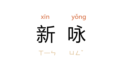 引宋 徐铉 《和印先辈及第后献座主朱舍人郊居之作》:“独坐公厅正烦暑,喜吟新咏见玄微。”宋 王安石 《详定试卷》诗:“汉 家故事真当改,新咏知君胜 弱翁。”清 黄鷟来 《秋日寄淮阴吴嵩三》诗:“华游新咏多,五色夺双眥。”