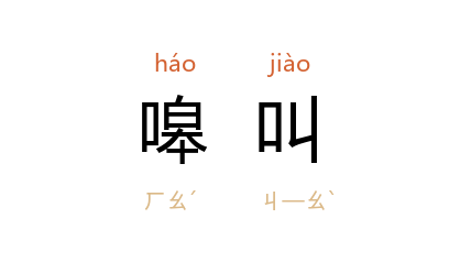 ⒈ 指兽类的吼叫。大声哭叫,叫唤。嗥,通“号”。