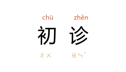⒈ 病人第一次到某医院或诊所接受诊疗,称为「初诊」。
