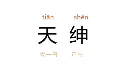 引唐 韩愈 《送惠师》诗:“是时雨初霽,悬瀑垂天绅。”宋 苏轼 《次韵王定国得颍倅》之一:“一噫固应号地籟,餘波犹足掛天绅。”清 顾我锜 《趵突泉》诗:“吾闻 匡庐 瀑,天绅倒掛双峯麓。”