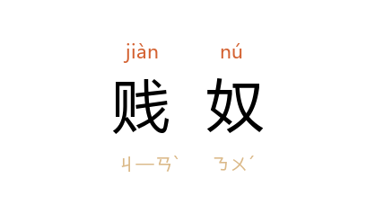 引《西游记》第七十回:“妖王上前喝道:‘好贱奴!怎么偷了我的金铃宝贝,在此胡弄!’”