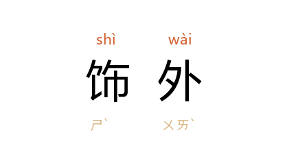 引汉 刘向 《说苑·反质》:“夫饰外以夸众,厚葬以隔真,使归者不得至,化者不得变,是使物各失其然也。”唐 常衮 《谢端午赐衣及器物等表》之二:“既承餙外之恩,弥积善中之惧。”清 袁树 《赘言》诗:“饰外而絮内,於身何有焉。”