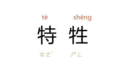 引《左传·襄公九年》:“祈以币更,宾以特牲。”杨伯峻 注:“款待贵宾,只用一种牲畜。一牲曰特。”《国语·楚语下》:“大夫举以特牲,祀以少牢。”韦昭 注:“特牲,豕也。”《晋书·王祥传》:“著遗令训子孙曰:家人大小不须送丧,大小祥设特牲,无违余命。”《礼记·郊特牲》 唐 陆德明 题解:“郊者,祭天之名,用一牛,故曰特牲。”