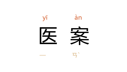 ⒈ 中医治病时对有关症状、处方、用药等的记录,多用做书名,如清代叶天士的《临证指南医案》、近人秦伯未的《清代名医医案》等。