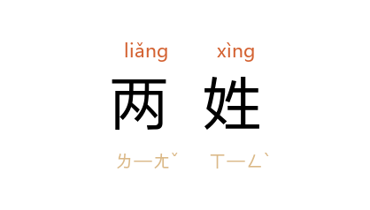 引《南齐书·礼志上》:“夫人伦之始,莫重冠婚,所以尊表成德,结欢两姓。”《初刻拍案惊奇》卷五:“元来 唐 时衣冠人家,婚礼极重。合卺之夕,凡属两姓亲朋,无有不来的。”清 余怀 《<板桥杂记>小引》:“五伦之外,无妨别缔良缘;两姓之餘,到处可逢佳偶。”
